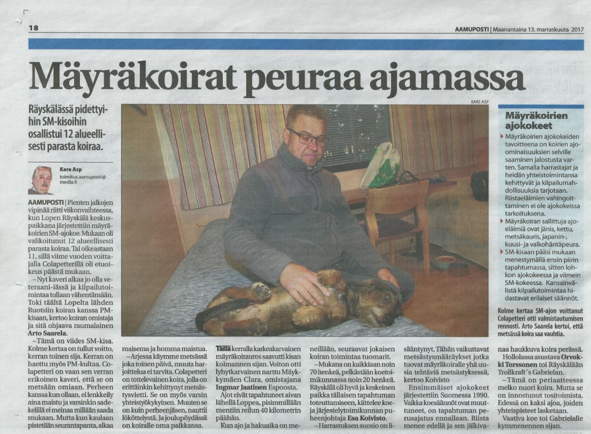 (HUOM! Kolmanneksi tulleesta koirasta ei ole palkintojenjakotilaisuudesta kuvia, koska koira ohjaajineen lähti pohjoismaiden mestaruuskisoihin heti tilaisuuden päätyttyä, eikä siten ehtinyt jäädä kuvauksiin.)